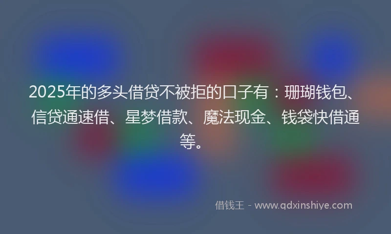 2025年的多头借贷不被拒的口子有:珊瑚钱包、信贷通速借、星梦借款、魔法现金、钱袋快借通等。