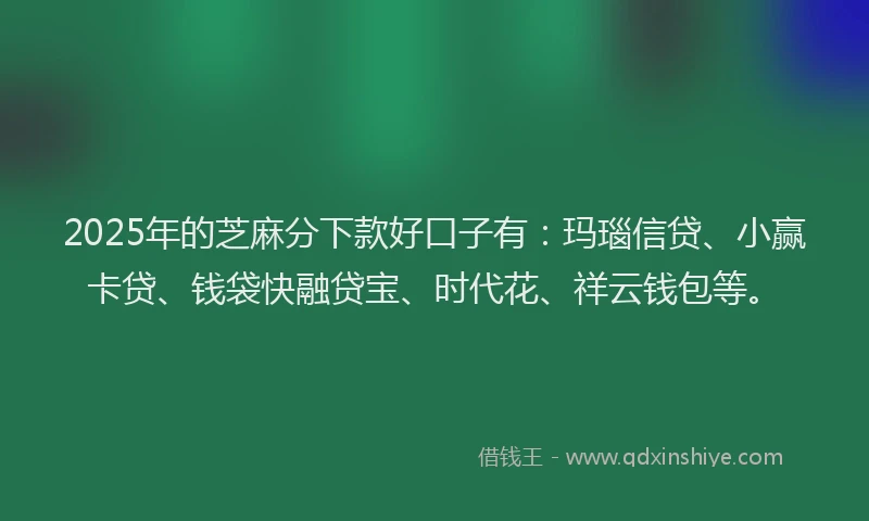 2025年的芝麻分下款好口子有:玛瑙信贷、小赢卡贷、钱袋快融贷宝、时代花、祥云钱包等。