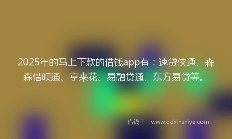 2025年的马上下款的借钱app有:速贷侠通、森森借呗通、享来花、易融贷通、东方易贷等。