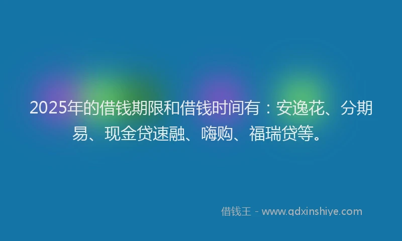 2025年的借钱期限和借钱时间有:安逸花、分期易、现金贷速融、嗨购、福瑞贷等。