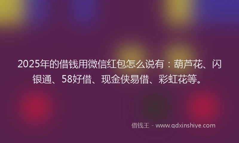 2025年的借钱用微信红包怎么说有:葫芦花、闪银通、58好借、现金侠易借、彩虹花等。