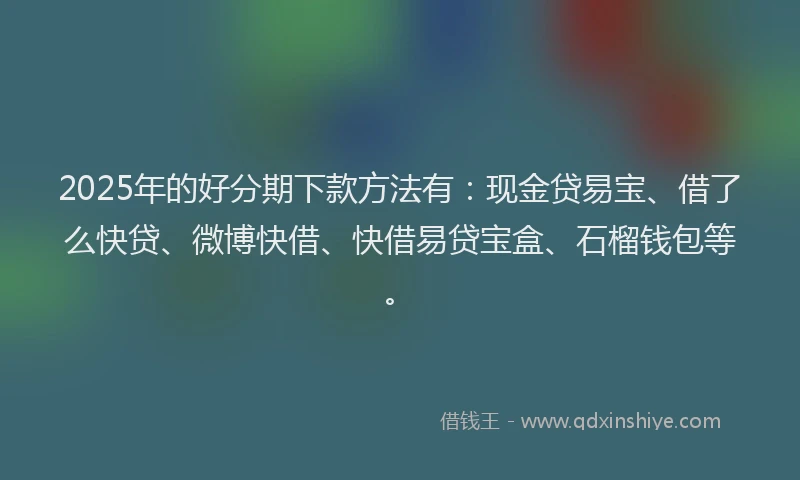 2025年的好分期下款方法有:现金贷易宝、借了么快贷、微博快借、快借易贷宝盒、石榴钱包等。