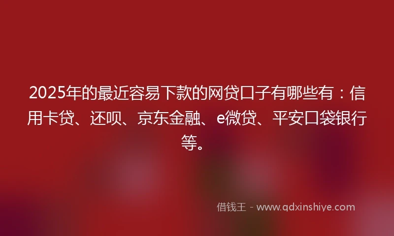 2025年的最近容易下款的网贷口子有哪些有:信用卡贷、还呗、京东金融、e微贷、平安口袋银行等。