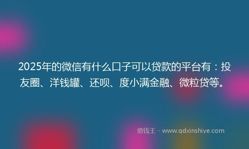 2025年的微信有什么口子可以贷款的平台有:投友圈、洋钱罐、还呗、度小满金融、微粒贷等。