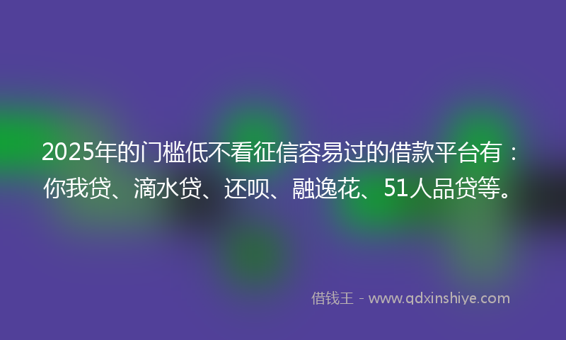 2025年的门槛低不看征信容易过的借款平台有:你我贷、滴水贷、还呗、融逸花、51人品贷等。