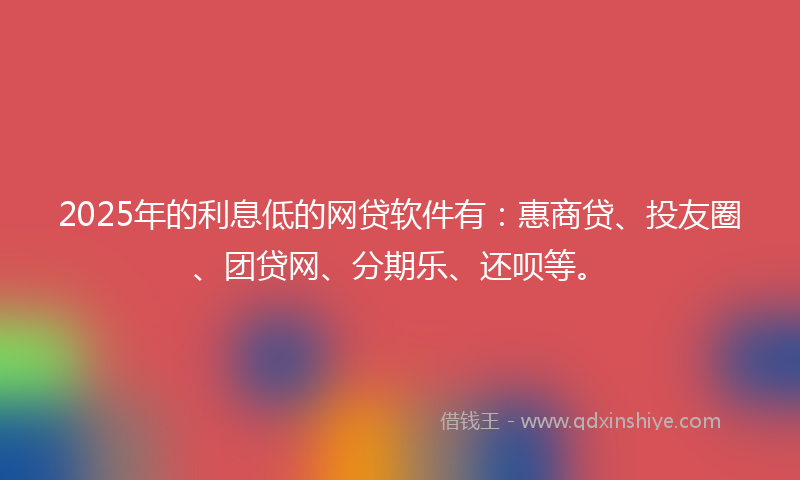 2025年的利息低的网贷软件有:惠商贷、投友圈、团贷网、分期乐、还呗等。