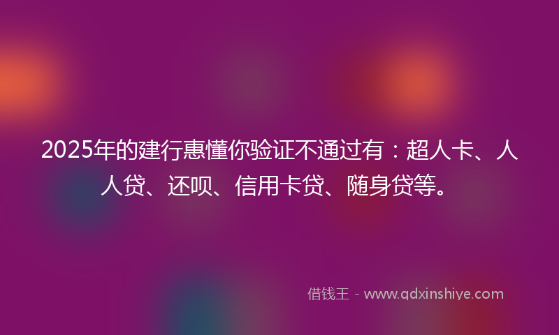 2025年的建行惠懂你验证不通过有:超人卡、人人贷、还呗、信用卡贷、随身贷等。
