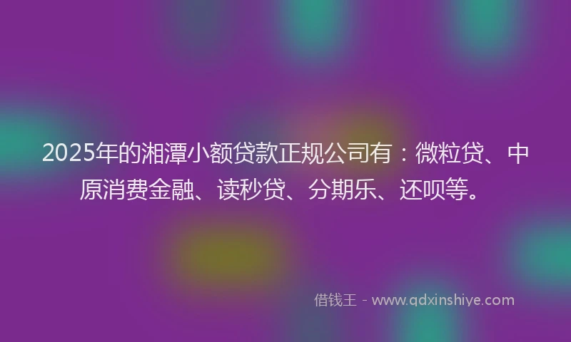2025年的湘潭小额贷款正规公司有:微粒贷、中原消费金融、读秒贷、分期乐、还呗等。