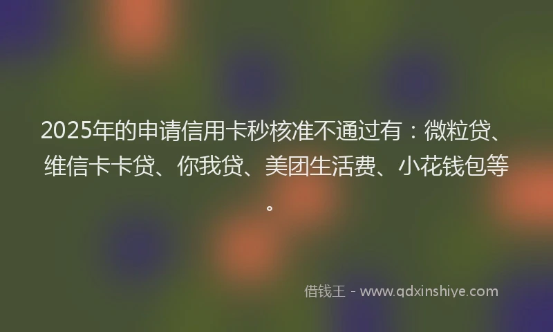 2025年的申请信用卡秒核准不通过有:微粒贷、维信卡卡贷、你我贷、美团生活费、小花钱包等。