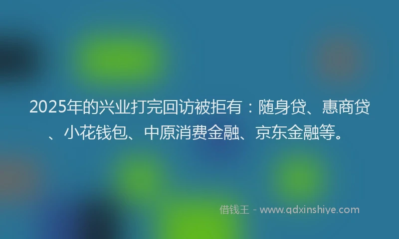 2025年的兴业打完回访被拒有:随身贷、惠商贷、小花钱包、中原消费金融、京东金融等。