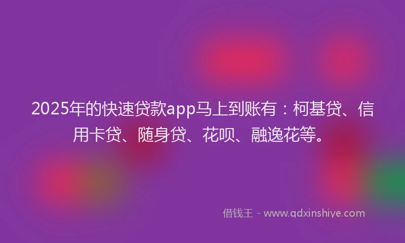 2025年的快速贷款app马上到账有:柯基贷、信用卡贷、随身贷、花呗、融逸花等。
