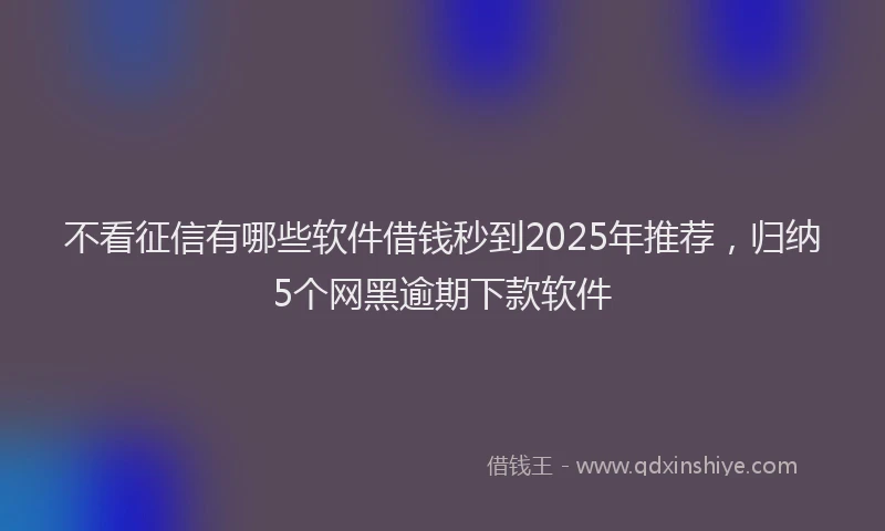 不看征信有哪些软件借钱秒到2025年推荐,归纳5个网黑逾期下款软件