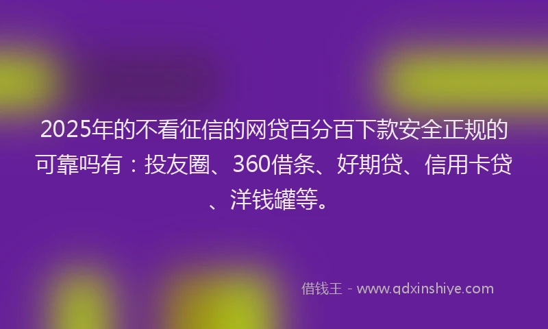 2025年的不看征信的网贷百分百下款安全正规的可靠吗有:投友圈、360借条、好期贷、信用卡贷、洋钱罐等。