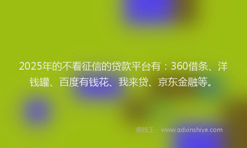 2025年的不看征信的贷款平台有:360借条、洋钱罐、百度有钱花、我来贷、京东金融等。