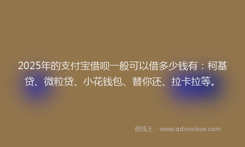 2025年的支付宝借呗一般可以借多少钱有:柯基贷、微粒贷、小花钱包、替你还、拉卡拉等。