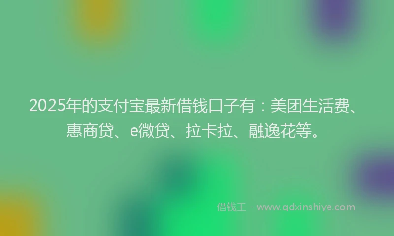 2025年的支付宝最新借钱口子有:美团生活费、惠商贷、e微贷、拉卡拉、融逸花等。