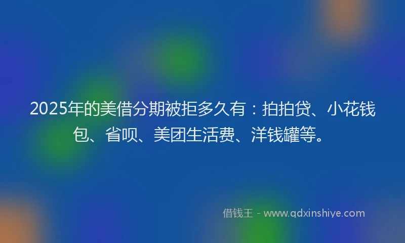 2025年的美借分期被拒多久有:拍拍贷、小花钱包、省呗、美团生活费、洋钱罐等。