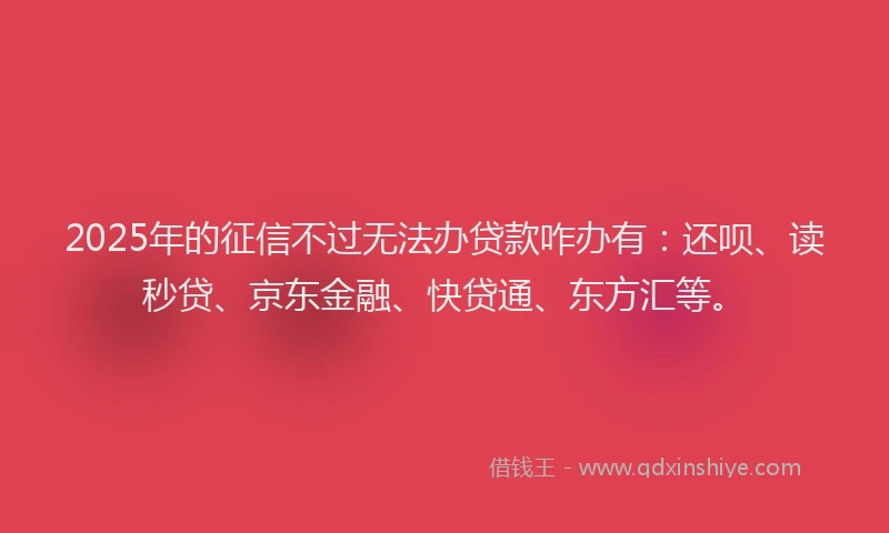 2025年的征信不过无法办贷款咋办有:还呗、读秒贷、京东金融、快贷通、东方汇等。
