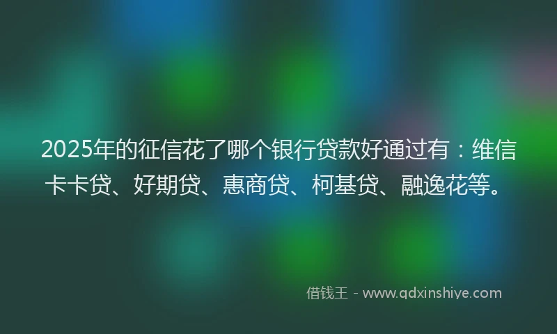 2025年的征信花了哪个银行贷款好通过有:维信卡卡贷、好期贷、惠商贷、柯基贷、融逸花等。