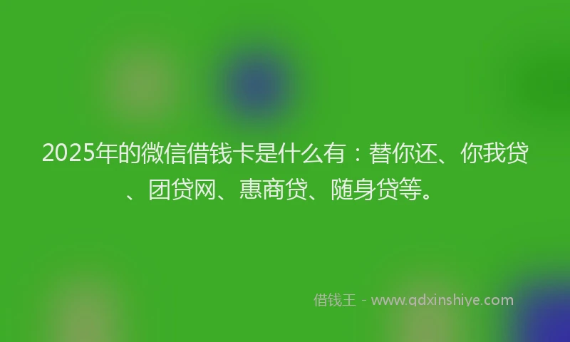 2025年的微信借钱卡是什么有:替你还、你我贷、团贷网、惠商贷、随身贷等。