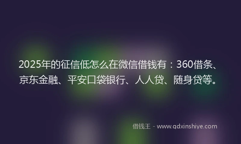2025年的征信低怎么在微信借钱有:360借条、京东金融、平安口袋银行、人人贷、随身贷等。