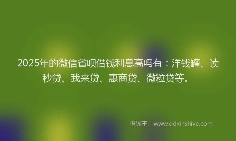 2025年的微信省呗借钱利息高吗有:洋钱罐、读秒贷、我来贷、惠商贷、微粒贷等。