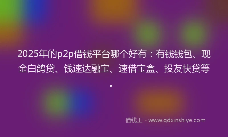2025年的p2p借钱平台哪个好有:有钱钱包、现金白鸽贷、钱速达融宝、速借宝盒、投友快贷等。