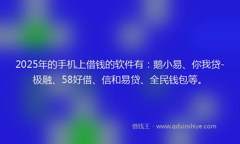2025年的手机上借钱的软件有:鹅小易、你我贷-极融、58好借、信和易贷、全民钱包等。