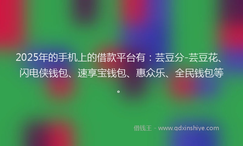 2025年的手机上的借款平台有:芸豆分-芸豆花、闪电侠钱包、速享宝钱包、惠众乐、全民钱包等。