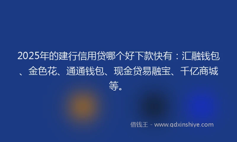 2025年的建行信用贷哪个好下款快有:汇融钱包、金色花、通通钱包、现金贷易融宝、千亿商城等。