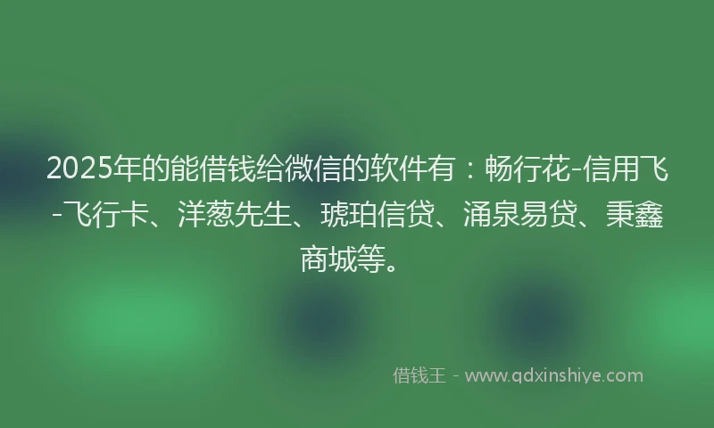 2025年的能借钱给微信的软件有:畅行花-信用飞-飞行卡、洋葱先生、琥珀信贷、涌泉易贷、秉鑫商城等。