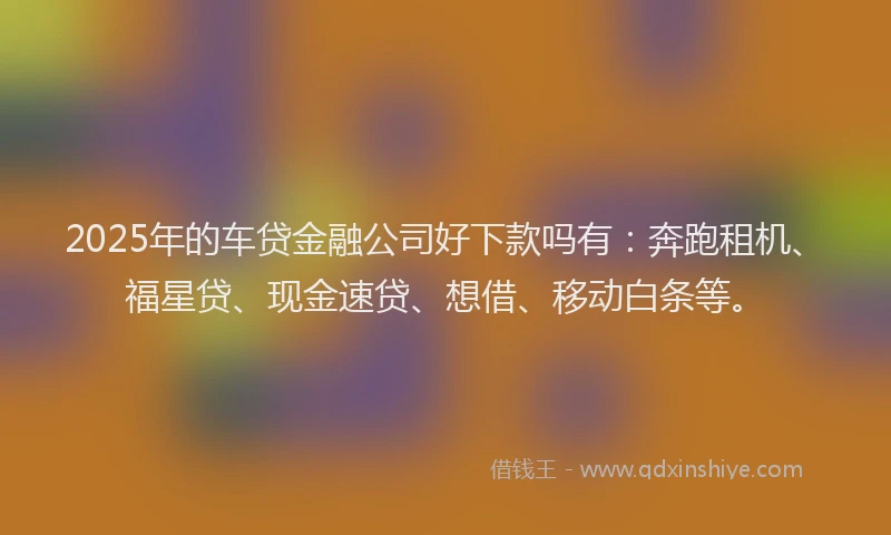2025年的车贷金融公司好下款吗有:奔跑租机、福星贷、现金速贷、想借、移动白条等。