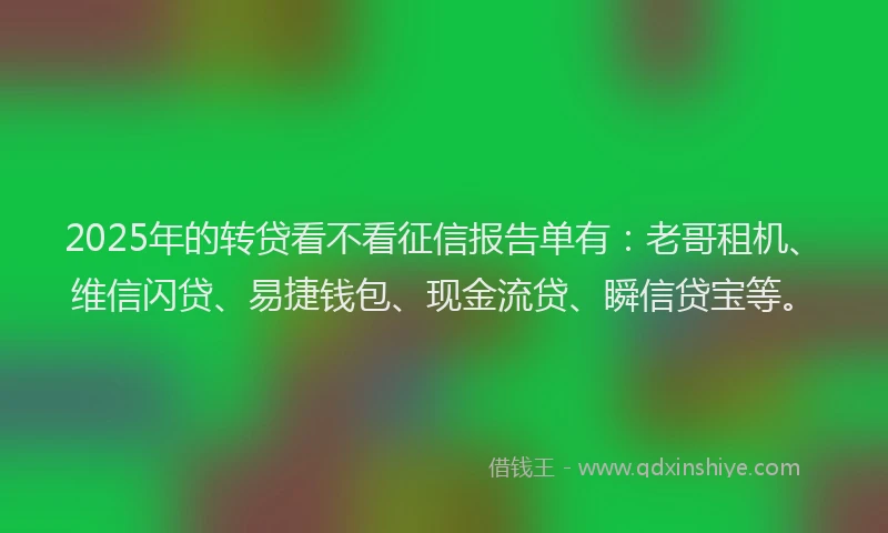 2025年的转贷看不看征信报告单有:老哥租机、维信闪贷、易捷钱包、现金流贷、瞬信贷宝等。