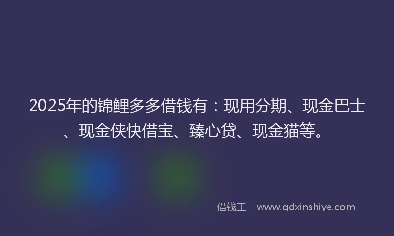 2025年的锦鲤多多借钱有:现用分期、现金巴士、现金侠快借宝、臻心贷、现金猫等。