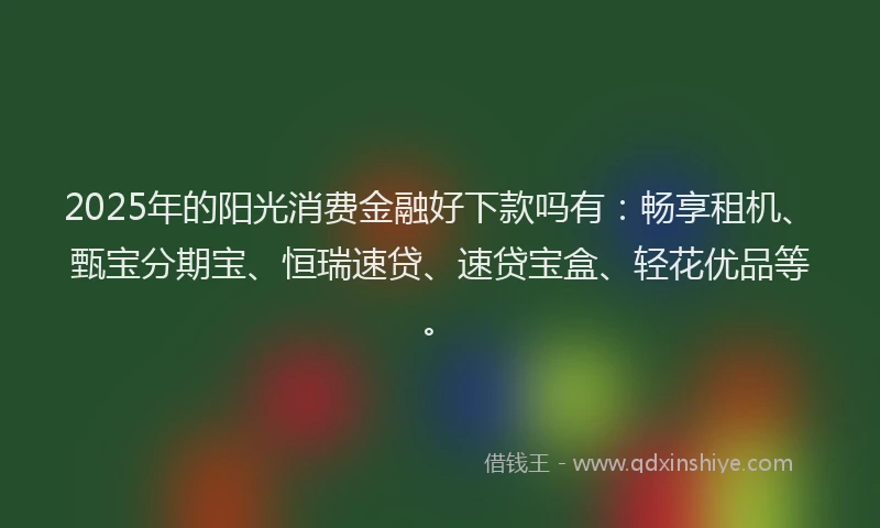 2025年的阳光消费金融好下款吗有:畅享租机、甄宝分期宝、恒瑞速贷、速贷宝盒、轻花优品等。