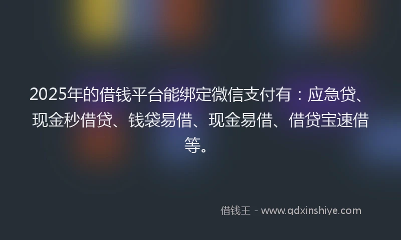 2025年的借钱平台能绑定微信支付有:应急贷、现金秒借贷、钱袋易借、现金易借、借贷宝速借等。