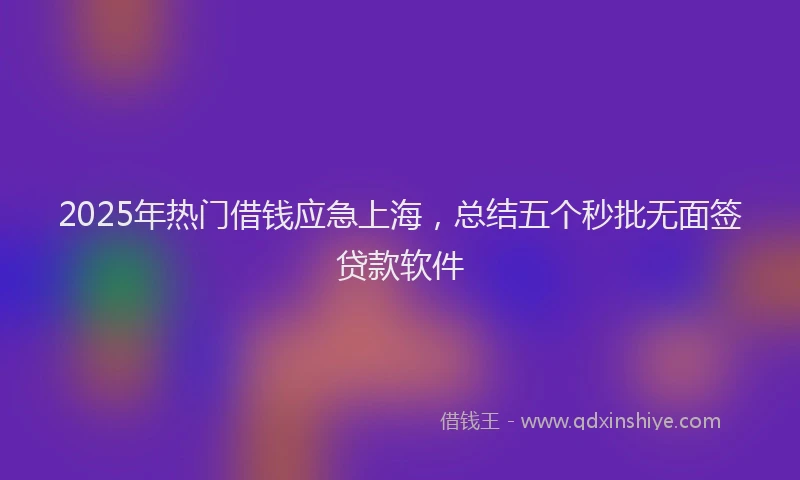2025年热门借钱应急上海,总结五个秒批无面签贷款软件
