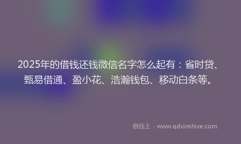 2025年的借钱还钱微信名字怎么起有:省时贷、甄易借通、盈小花、浩瀚钱包、移动白条等。
