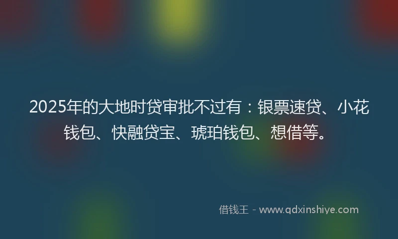 2025年的大地时贷审批不过有:银票速贷、小花钱包、快融贷宝、琥珀钱包、想借等。
