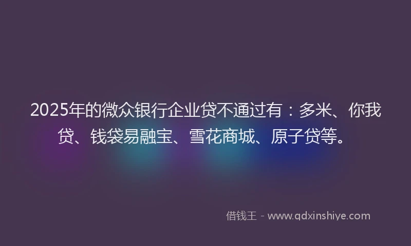 2025年的微众银行企业贷不通过有:多米、你我贷、钱袋易融宝、雪花商城、原子贷等。