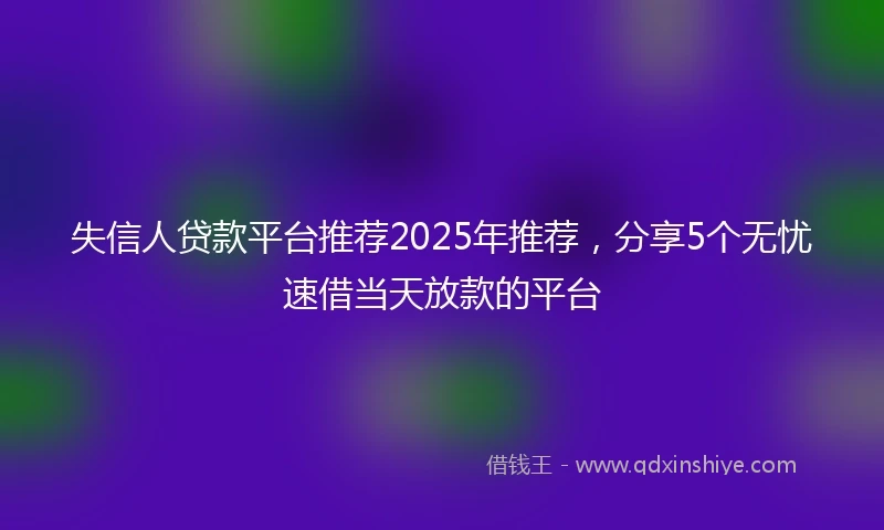 失信人贷款平台推荐2025年推荐,分享5个无忧速借当天放款的平台