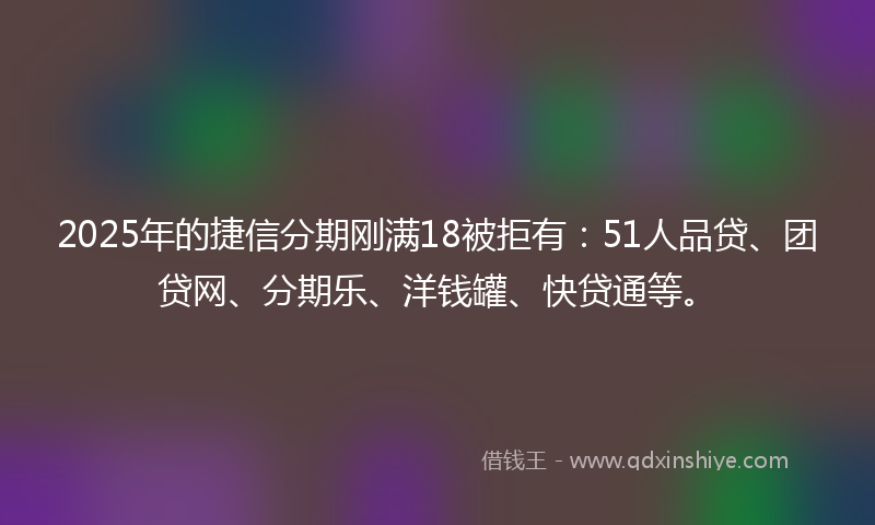2025年的捷信分期刚满18被拒有:51人品贷、团贷网、分期乐、洋钱罐、快贷通等。