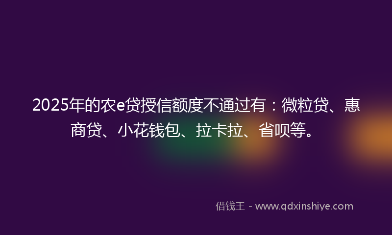 2025年的农e贷授信额度不通过有:微粒贷、惠商贷、小花钱包、拉卡拉、省呗等。