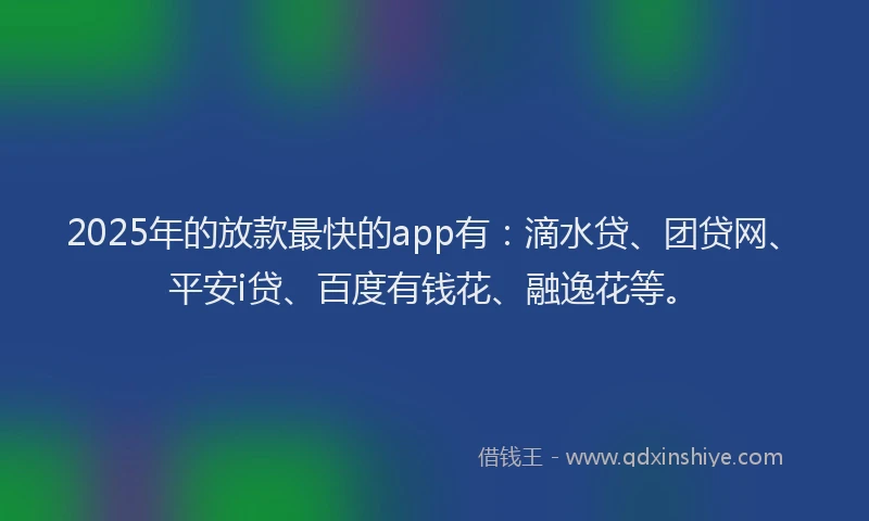 2025年的放款最快的app有:滴水贷、团贷网、平安i贷、百度有钱花、融逸花等。