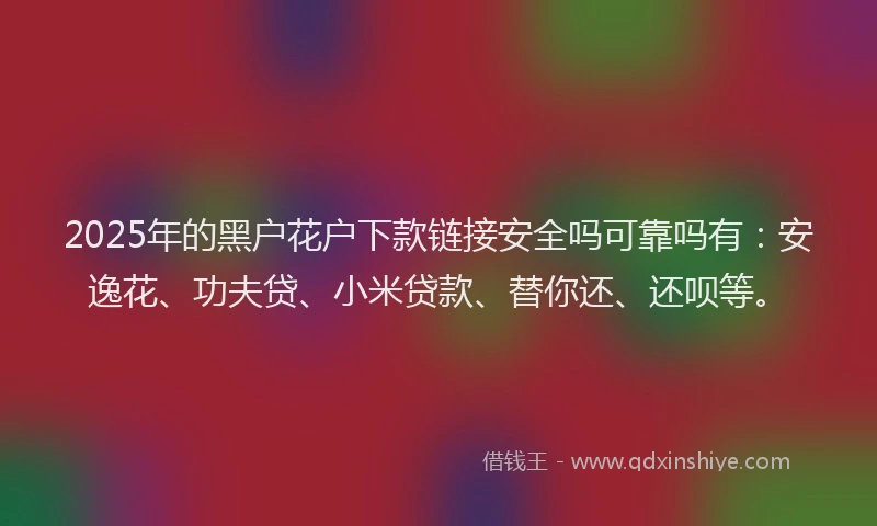 2025年的黑户花户下款链接安全吗可靠吗有:安逸花、功夫贷、小米贷款、替你还、还呗等。