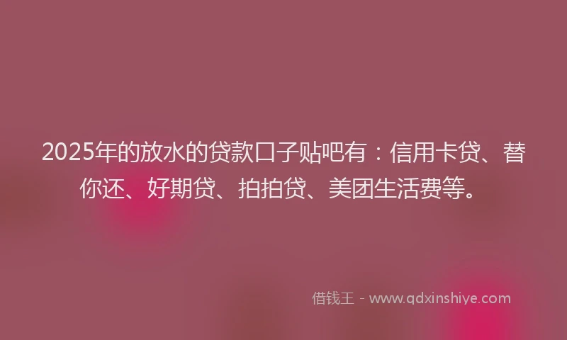 2025年的放水的贷款口子贴吧有:信用卡贷、替你还、好期贷、拍拍贷、美团生活费等。