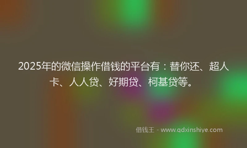 2025年的微信操作借钱的平台有:替你还、超人卡、人人贷、好期贷、柯基贷等。