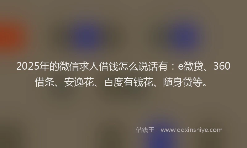 2025年的微信求人借钱怎么说话有:e微贷、360借条、安逸花、百度有钱花、随身贷等。