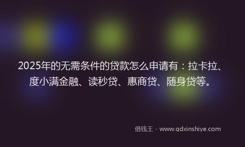 2025年的无需条件的贷款怎么申请有:拉卡拉、度小满金融、读秒贷、惠商贷、随身贷等。