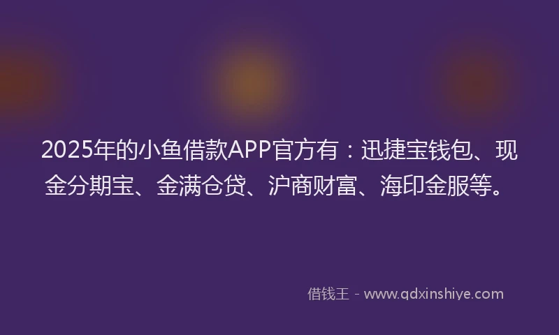 2025年的小鱼借款APP官方有:迅捷宝钱包、现金分期宝、金满仓贷、沪商财富、海印金服等。